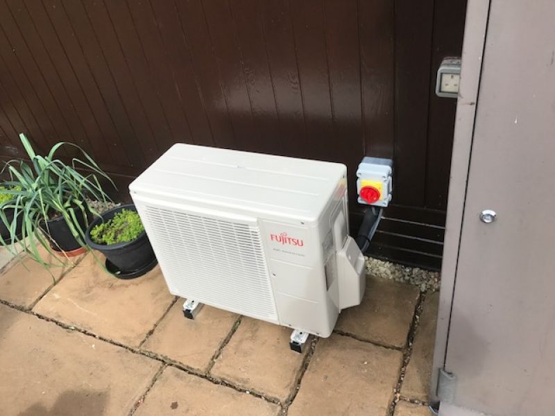 Single wall mount air conditioner unit fitted to static home, pipe work was hidden in the drain pipe and under building so nothing on show externally.